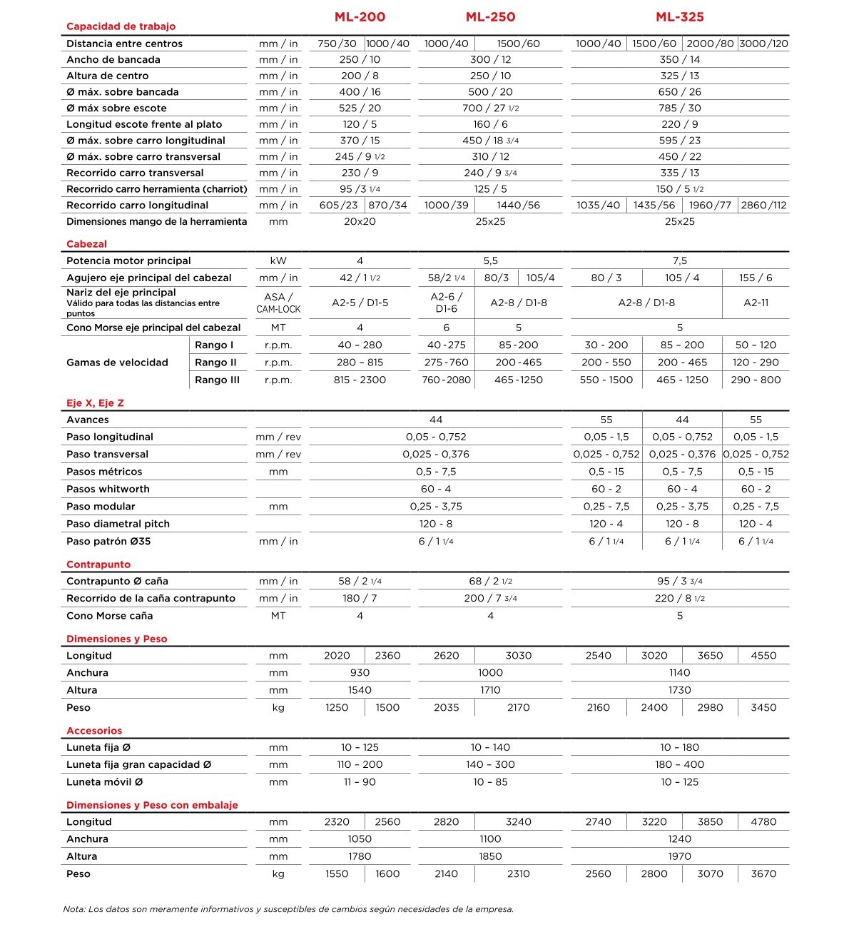 La nueva gama de tornos ML, equipada con variador de velocidad electrónico, permite seleccionar en cada momento la velocidad de corte necesaria, consiguiendo mejores acabados superficiales, optimizando el consumo de herramientas y mejorando el rendimiento en el mecanizado.